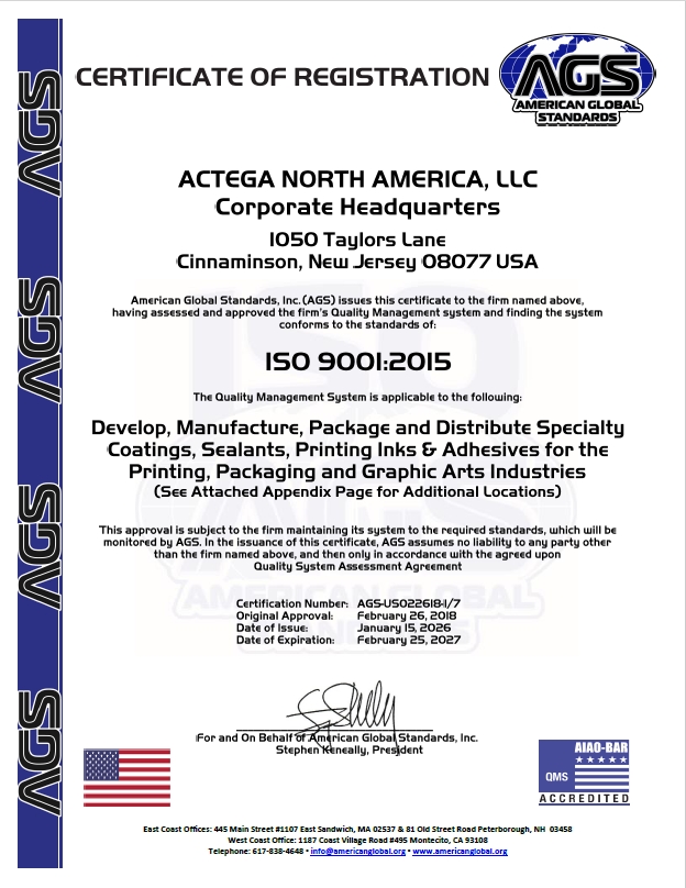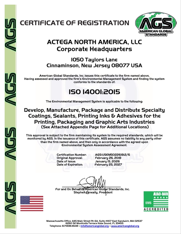 ACTEGA Certifications and Ratings